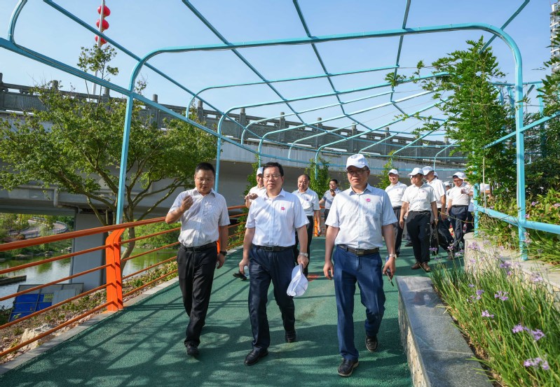 福泉市副市长杨欣(左一)、广西师范大学党委副书记、校长贺祖斌(中)一行人考察贵州省黔南州金山生态体育公园