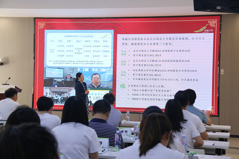 7月25日,2021-2022学年“青椒计划”百优学员暑期研修班开班仪式在我校举行,本次研修班由友成企业家扶贫基金会主办,我校承办,我校“数学课栈”负责具体执行。教育部教师工作司司长任友群(线上),友成企业家扶贫基金会副理事长、特岗“青椒计划”发起人汤敏,我校党委常委、副校长黄文韬,著名经济学家左小蕾,北京师范大学教育学部部长朱旭东(线上),友成企业家扶贫基金会副秘书长苗青等出席了本次活动。活动由我校数学与统计学院负责人主持。经过为期一年的线上课程学习,共有116名优秀教师从全国12835名参训教师中脱颖而出,受邀参加本期研修班。