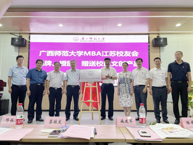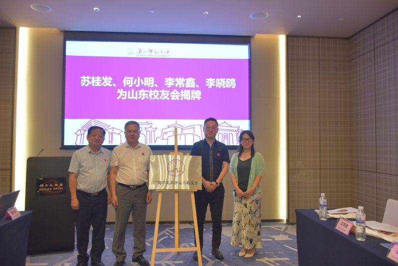 校友工作办公室主任宣读了关于同意成立两地三个校友组织成立的相关批复文件;校团委、文旅学院负责人分别宣读了贺祖斌校长署名贺信;会议还分别产生了三个校友组织组织机构成员。与会领导、嘉宾共同为江苏校友会、山东校友会、MBA江苏校友会揭牌,苏桂发为江苏校友会、山东校友会、MBA江苏校友会授旗并为组织机构成员颁发了聘书。