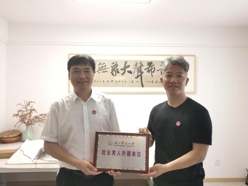 黄文韬向杭州斯曼特建材科技有限公司授“就业育人共建单位”牌匾