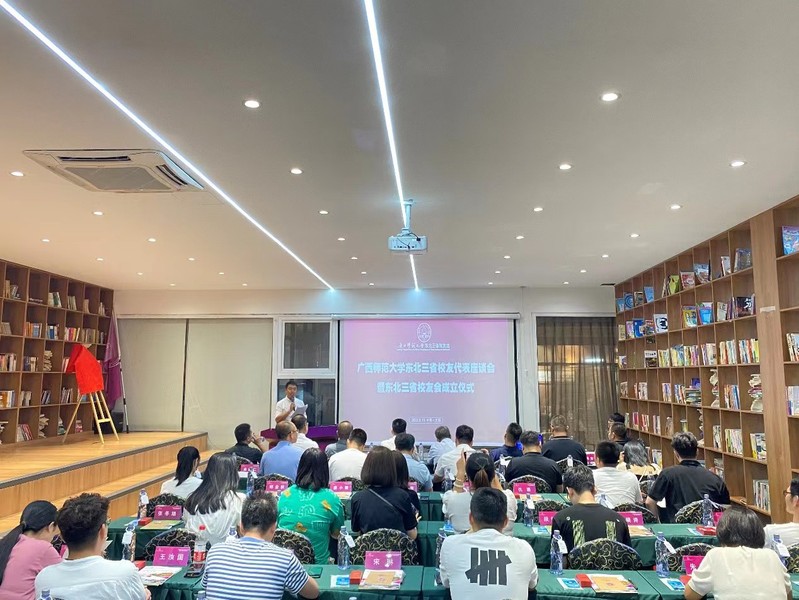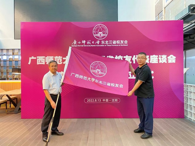 林国庆宣读了《关于同意成立广西师范大学东北三省校友会的批复》和校长、校友会会长贺祖斌为东北三省校友会成立发来的贺信。与会领导、校友代表共同为东北三省校友会揭牌;苏桂发为东北三省校友会授旗、赠送学校文创纪念品;苏桂发、林国庆共同为组织机构成员颁发聘书。