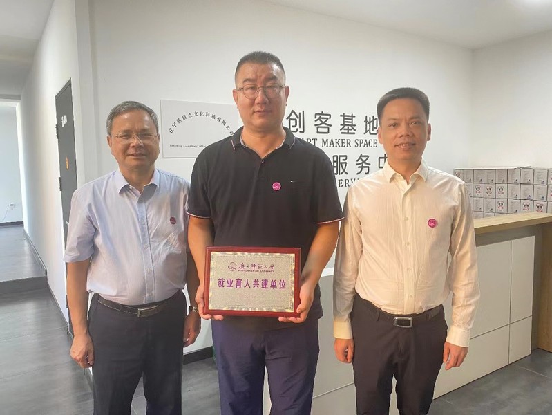 期间,学校代表团一行参观走访了校友企业沈阳启点创客基地,并颁发了“就业育人共建单位”牌匾。