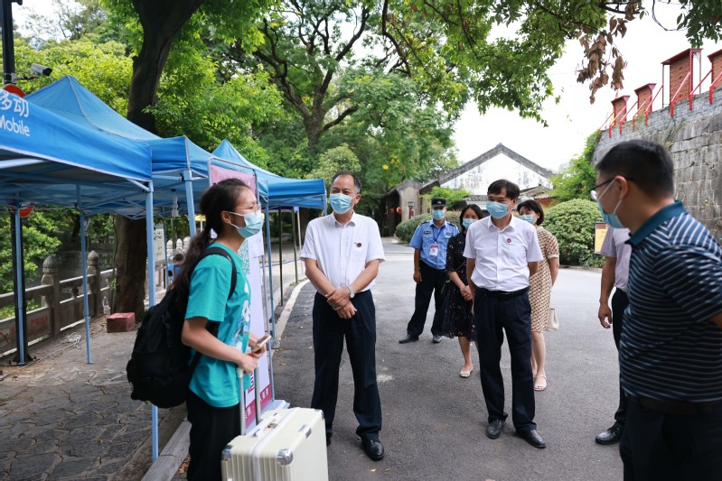 贺祖斌实地走访了育才校区学生返校报到处、核酸检测点等场所,详细了解学生返校后各项防疫措施、服务保障、安全管理工作,对新学期开学各方面准备工作予以充分肯定,并对保障校园安全和师生返校顺利作出努力的医护人员和志愿者们表示感谢。