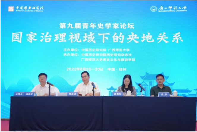 8月29日,中国历史研究院与广西师范大学主办、中国历史研究院历史研究杂志社与广西师范大学历史文化与旅游学院承办的第九届青年史学家论坛在广西桂林召开,会议主题为“国家治理视域下的央地关系”。广西师范大学校党委副书记、校长贺祖斌教授,中国历史研究院纪委书记、副院长,《历史研究》常务副主编路育松出席开幕式并致辞。开幕式由广西师范大学历史文化与旅游学院院长刘祥学教授主持。