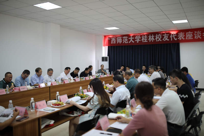 校友工作办公室相关负责人介绍了学校雁山校区相思林项目建设情况;桂林校友赵西蒙、戴东辉、徐东次、莫绍启及海南校友会会长姜钧懿等代表发言,与会校友对母校90周年华诞表示祝贺,并对学校的发展和90周年校庆提出了建议和意见。