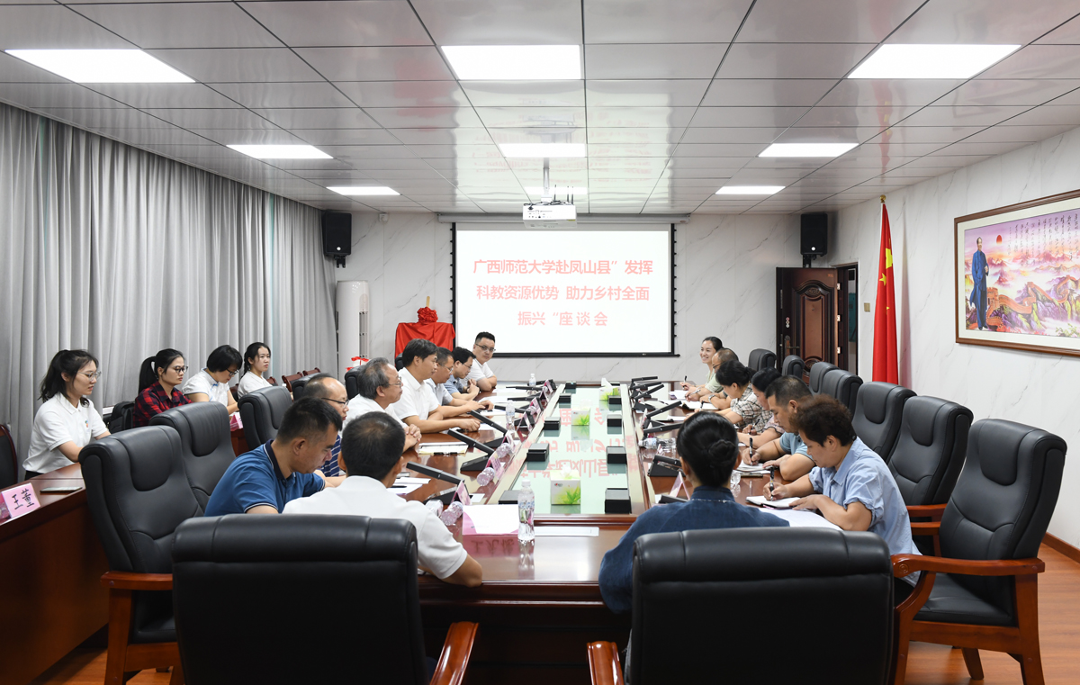 我校五个团队参加座谈会,并围绕校县合作、县域经济合作、乡村振兴工作、电商人才培训、教师教育培养培训等内容进行了座谈交流。凤山县政府办公室、教育局、工信和商务局(科技局)、乡村振兴局、农业农村局相关负责人参加了座谈会。
