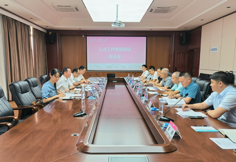9月8日,自治区人力资源社会保障厅副厅长、一级巡视员蒋劼一行5人到桂林高校开展人才工作专题调研会。调研座谈会在我校育才校区国教中心2号楼211会议室举行。座谈会结束后,贺祖斌校长出席了个别访谈会。校党委常委、宣传部部长汤志华参加了座谈会。