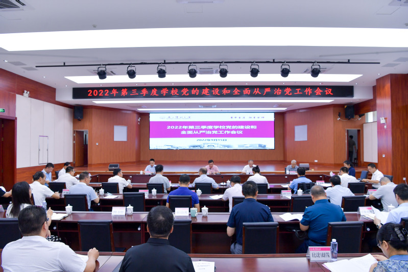9月15日,我校在育才校区国教中心2号楼201报告厅召开2022年第三季度学校党的建设和全面从严治党工作会议。校党委副书记、校长贺祖斌出席会议并讲话,强调要全力以赴做好学校第十二次党代会各项筹备工作,常抓不懈推进“五基三化”攻坚年行动,不折不扣全面推进“清廉师大”建设,以优异成绩迎接党的二十大胜利召开。