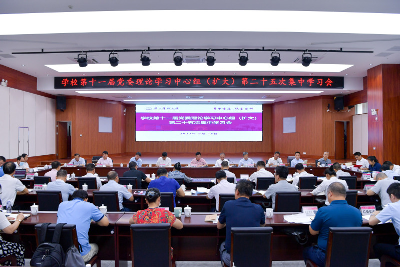 9月15日,我校在育才校区召开学校第十一届党委理论学习中心组(扩大)第二十五次集中学习会,会议认真学习贯彻习近平总书记近期重要讲话精神和理论著作,推动学校学习宣传贯彻习近平新时代中国特色社会主义思想取得新实效,切实引导全校师生把思想和行动统一到党中央的决策部署上来,为加快推进国内高水平大学和幸福美好师大建设,办好人民满意的教育提供强大的理论基础、思想保证和精神动力。