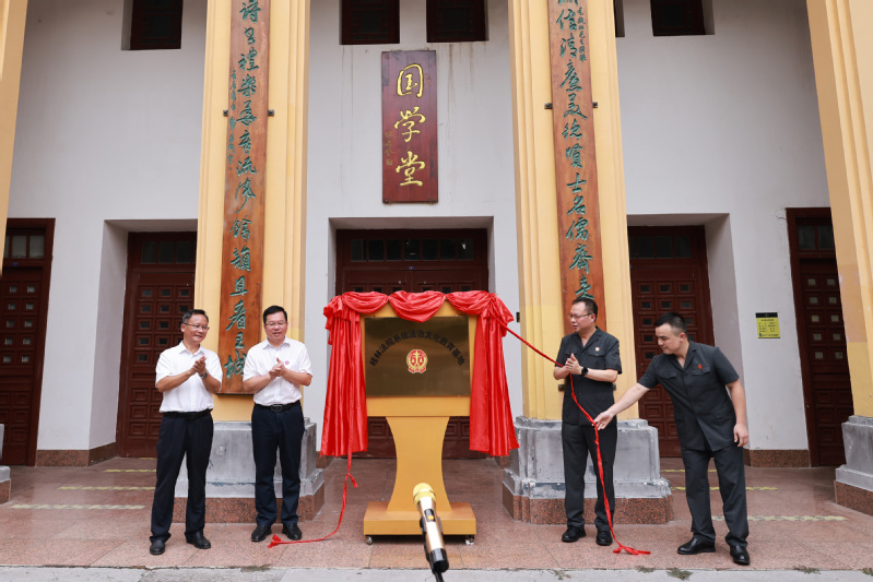仪式上,贺祖斌、林春逸、杨晓春、苗小所、文明等领导在王城校区国学堂前,共同为桂林法院系统法治文化教育基地揭牌。
