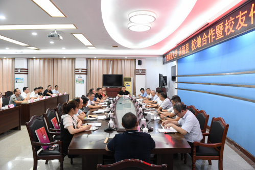 在校地合作暨校友座谈会上,我校校友、永福县委常委、常务副县长秦传志介绍了永福县经济社会发展及教育改革情况。黄文韬介绍了学校建设发展情况,学校90周年校庆筹备及活动安排情况,回顾了近年来学校与永福县合作交流情况。他充分肯定了广大校友在各自岗位上为永福经济社会发展所做的贡献,他希望各位校友一如既往地关心、支持学校建设和发展,并诚邀大家在90周年校庆之际相约师大,共襄盛举。黄文韬表示,政产学研用融合发展是高校办学发展的重要内容,希望充分发挥师大在科学研究、人才培养、社会服务方面的优势,结合永福的地方特色支柱产业,围绕“人才培养”“人才服务”“教师教育”“康养旅游”“乡村振兴”等领域和方向,加强科研项目合作,推动产学研“智库建设”,建立长期战略合作关系。