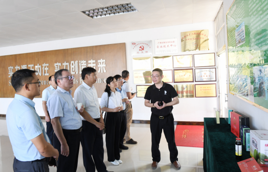活动中,黄文韬一行调研了永福县永安乡枫木村村级集体产业(红籽花生)、红籽花生加工间,考察了罗汉果特色小镇、桂林实力科技有限公司、罗汉果科技示范园。学校西部乡村振兴研究院向永福县永安乡枫木村调研基地观测点捐赠2万元特色产业(红籽花生)种植基地设备项目经费。黄文韬代表学校向桂林实力科技有限公司颁授“广西师范大学就业育人共建单位”牌匾。