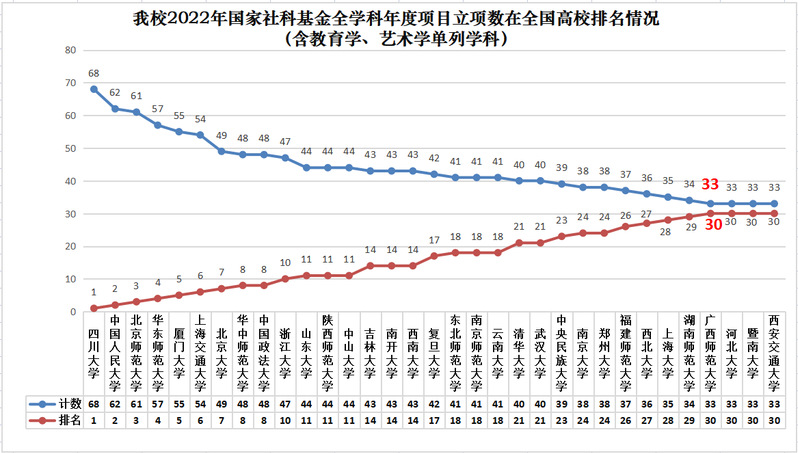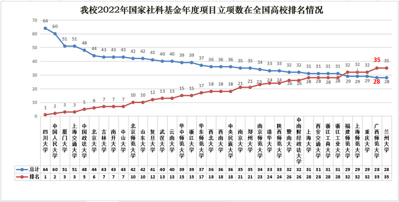 我校2022年国家社科基金年度项目立项数在全国高校排名情况