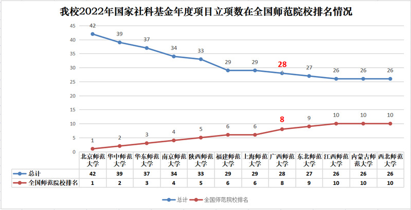 我校2022年国家社科基金年度项目立项数在全国师范院校排名情况