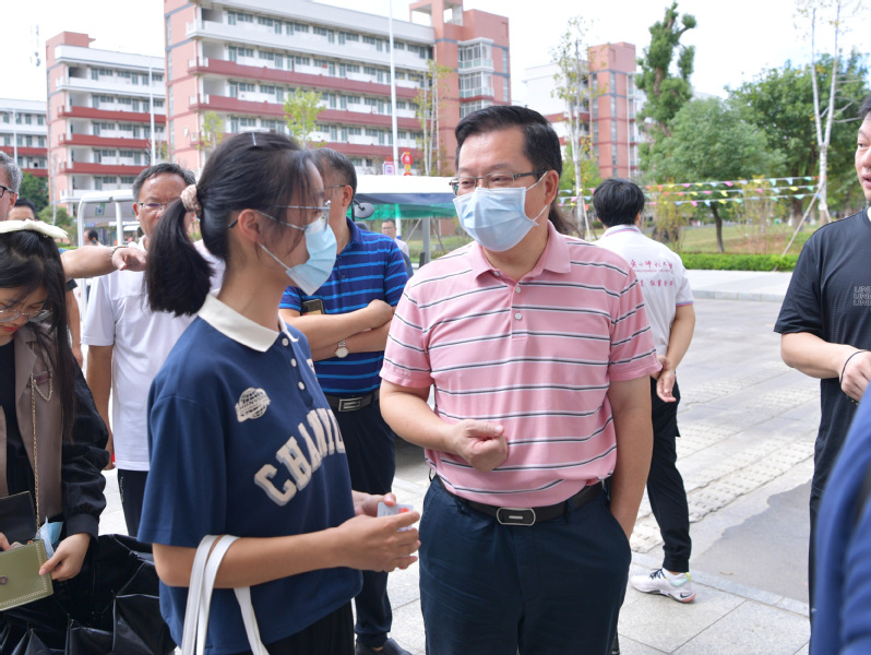 校长贺祖斌实地检查雁山校区北一门人员出入情况,并与学生亲切交谈