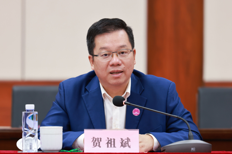 贺祖斌代表学校对中国工商银行广西区分行长期以来给予学校的关心和支持表示衷心的感谢。贺祖斌表示,当前,广西师大正全力推进“双一流”建设,正向国内高水平大学的目标迈进。中国工商银行坚持服务实体经济和教育事业发展,致力于打造“百年老店”。站在新的起点上,双方携手共进,进一步加强校银合作意义深远。贺祖斌希望双方本着“长期合作、相互促进、平等协商、互利共赢”的原则进行全面战略合作,打造银校合作、产学研协同创新的典范,为助力壮美广西建设提供有力支撑。