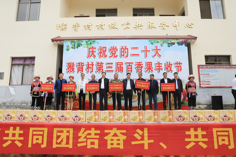 10月20日,校党委常委、副校长、校乡村振兴领导小组常务副组长黄文韬带队到资源县猴背村参加“庆祝党的二十大——猴背村第三届百香果丰收节”。资源县县委常委、挂职副县长李源,资源县县委常委、挂职副县长肖志勇,资源县政协副主席吴龙华,我校校办/乡村振兴办、廉政办/巡察办、离退处、经管学院、化药学院、生科院、校医院等相关负责人和师生,资源县乡村振兴局、资源县水利局、桂林移动公司、桂林联通公司、桂林万禾农产品有限责任公司、广西资源农村商业银行股份有限公司相关负责人参加此次活动。