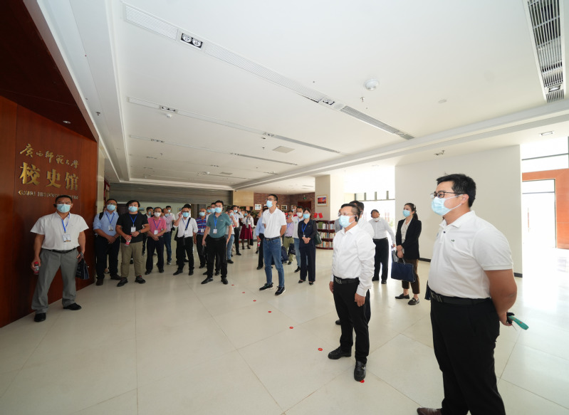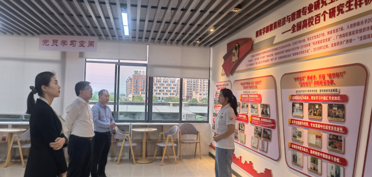 座谈结束后,广西民族师范学院一行在学校相关负责人的陪同下,参观了学校校史馆,调研了我校马克思主义学院党委、教育学部教育经济与管理专业研究生党支部、政治与公共管理学院社会学与社会工作系教工党支部的党建情况。