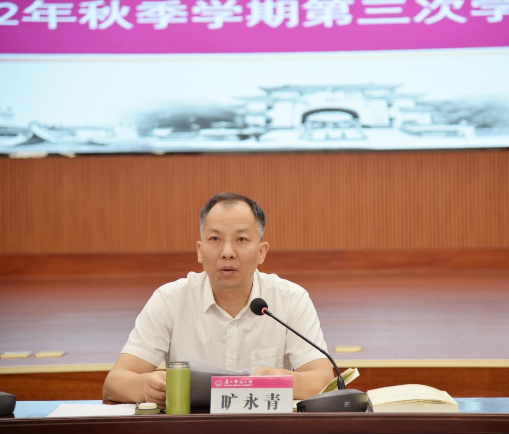旷永青在会上作了总结讲话。他就学工系统深入学习宣传贯彻党的二十大精神提出了三点要求:一是提高学习宣传贯彻党的二十大精神的政治自觉,深刻领会精神实质,准确把握核心要义;二是抓住学习宣传贯彻党的二十大精神的关键环节,强化宣传工作力度,营造浓厚学习氛围;三是抓好学习宣传贯彻党的二十大精神的关键队伍,狠抓队伍作风建设,纵深推进清廉师大建设。