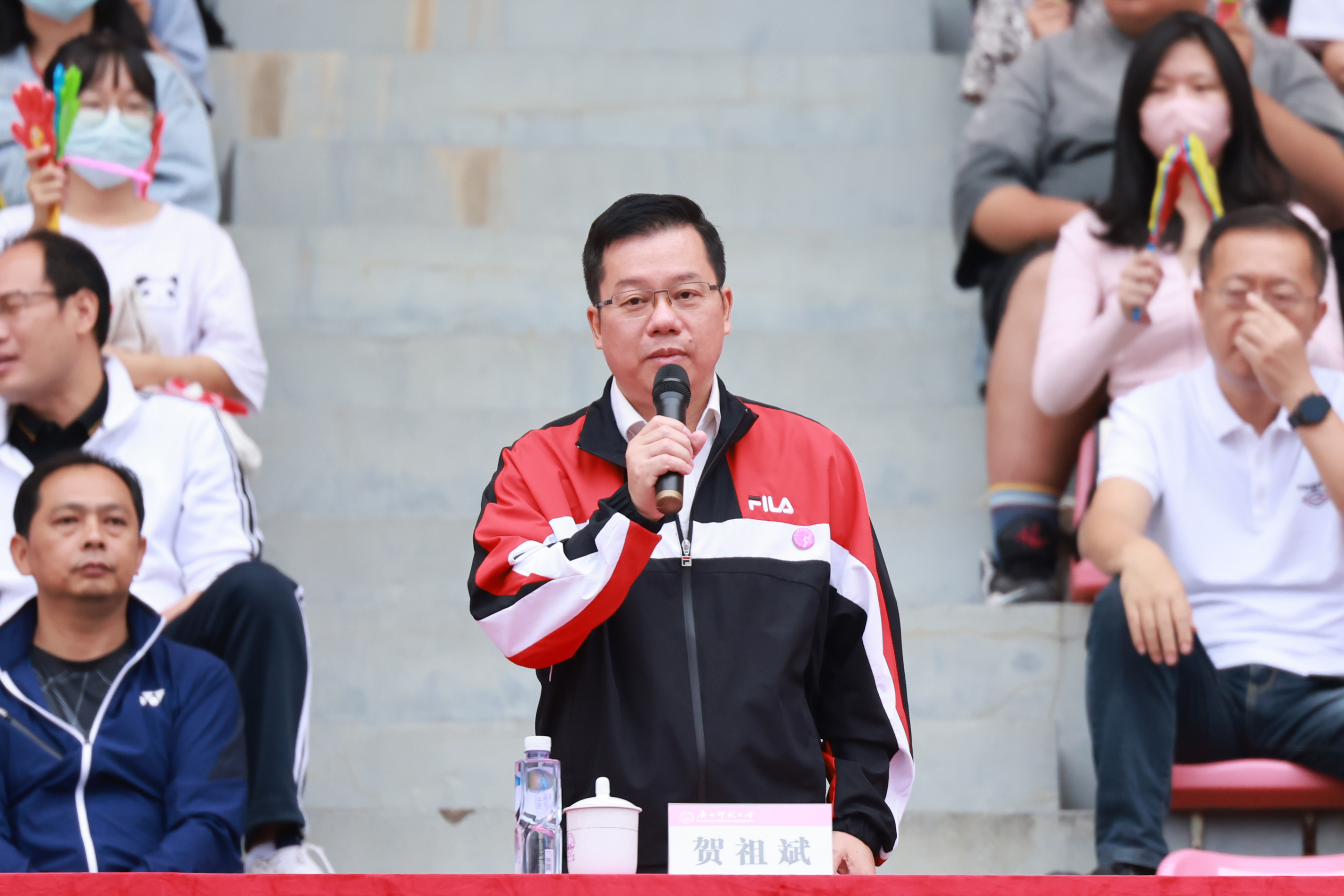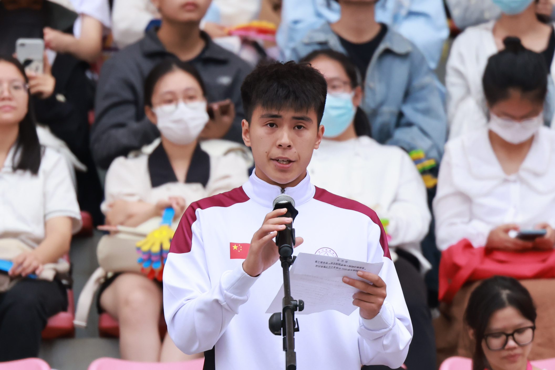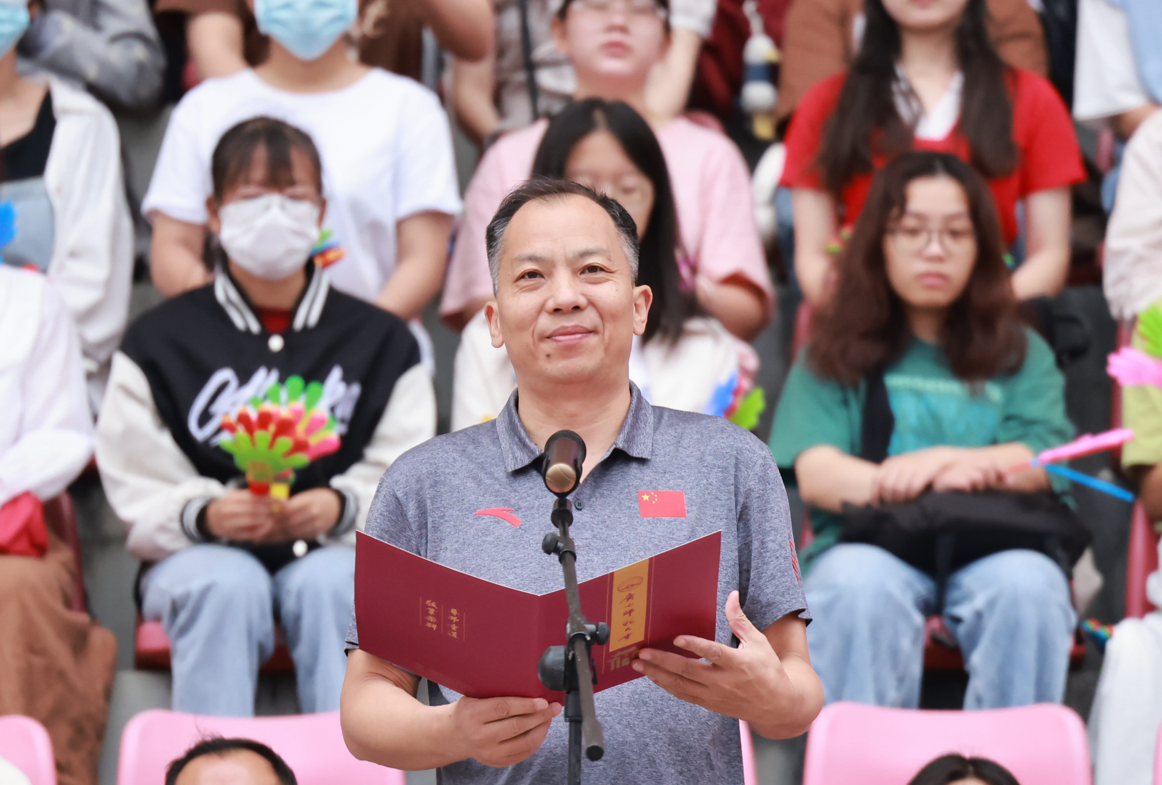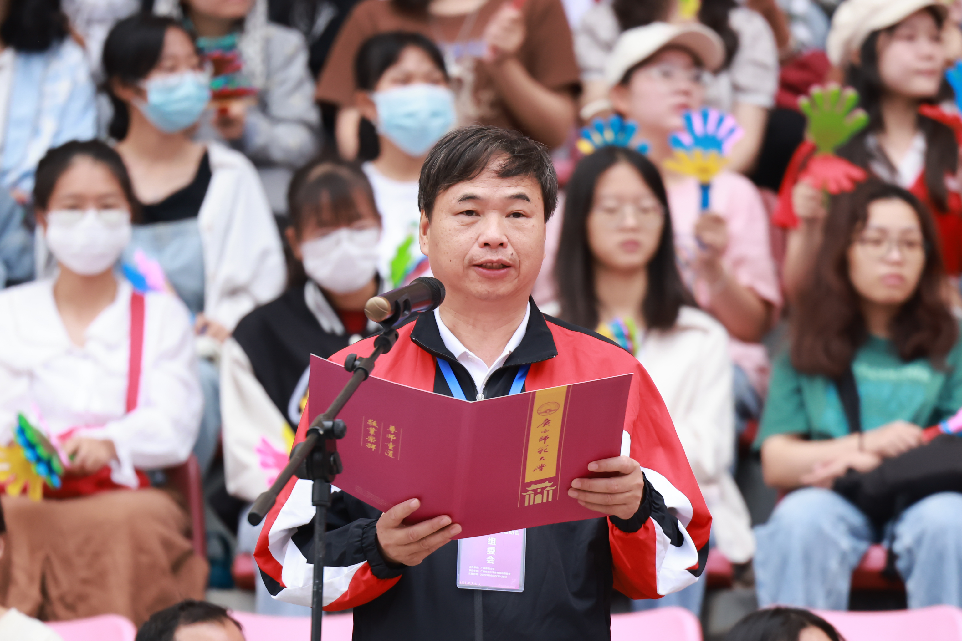 校党委副书记旷永青致开幕辞。他指出,一直以来,我校始终重视体育工作,认真贯彻体育强国战略,坚持五育并举,以全民健身带动健康生活,以体育竞技彰显办学精神,大力推动体育事业发展。旷永青勉励全体运动员秉持更快、更高、更强、更团结的奥林匹克精神,顽强拼搏,实现比赛成绩和精神文明双丰收;希望全体裁判员做到公正裁判,热情服务。他强调,一年一度的田径运动会是全校的体育盛事,也是广大师生大显身手的大舞台。希望全校师生以此为契机,坚持体教融合、以体育人,推动学校体育运动蓬勃发展,以崭新的面貌献礼学校九十周年校庆。