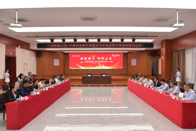 10月27日,广西师范大学与中国农业银行桂林分行全面战略合作协议签约仪式在我校育才校区举行。中国农业银行桂林分行党委书记、行长彭春祥出席仪式并致辞。学校校友工作办公室、教育发展基金会主要负责人代表学校致辞。仪式由校庆办负责人主持。