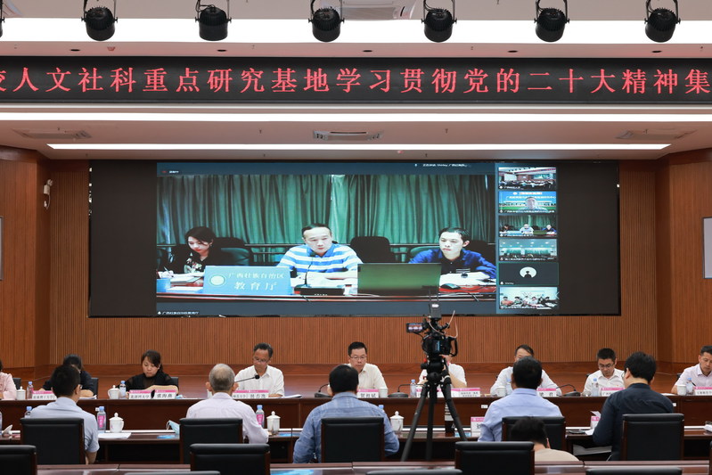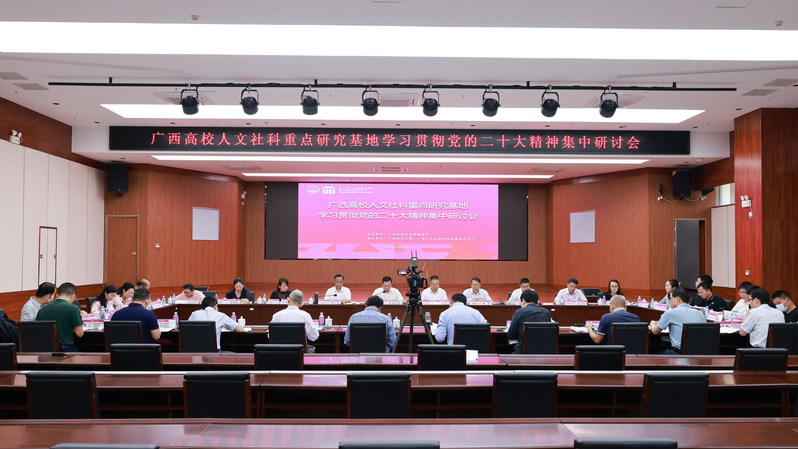 10月26日,由自治区教育厅主办、广西人文社会科学发展研究中心(以下简称“广西文科中心”)承办的广西高校人文社科重点研究基地学习贯彻党的二十大精神集中研讨会在我校育才校区举行。