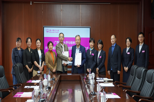 校党委常委、副校长苏桂发,桂林学院校董事、校长、校党委副书记杨树喆代表双方签署协议。