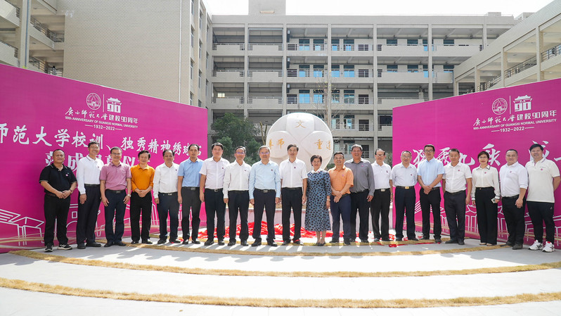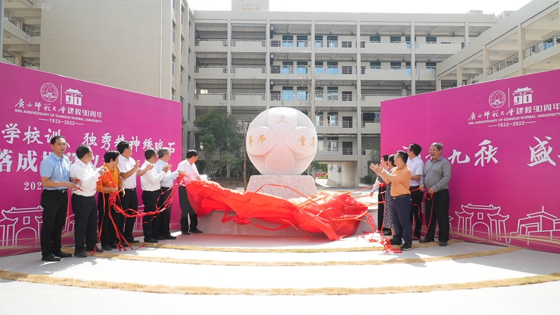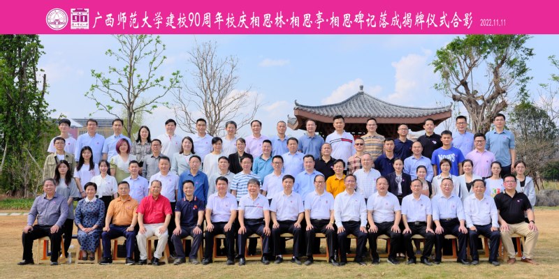 11月11日,在喜迎学校90周年庆典之际,我校在雁山校区举行由各地校友会捐建的相思林、相思亭、相思亭碑,校训、独秀精神绣球石,励志石落成揭幕仪式。副校长黄文韬、苏桂发,纪检监察组组长、校党委常委莫坷,副校长林春逸,总会计师李英利,校党委常委黄海波分别出席相关活动并与校友代表共同为捐建景观揭幕。
