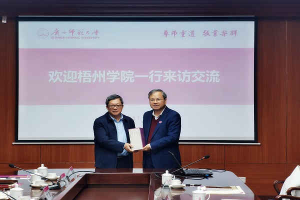 副校长苏桂发为梧州学院杨奔校长赠送90周年校庆丛书