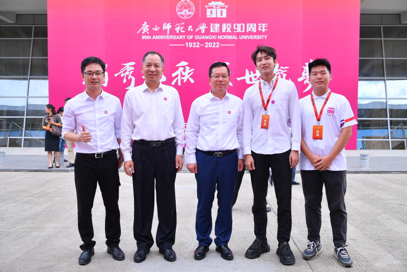 校党委副书记、校长贺祖斌、党委副书记旷永青与金奖项目团队合影