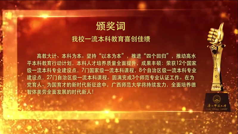 学校全面落实“以本为本、四个回归”,坚持立德树人,切实巩固人才培养中心地位和本科教学基础地位,一直致力于建设高水平本科教育,坚持分类发展、特色发展,不断深化专业改革。加快推进新文科、新工科建设,做强一流本科、建设一流专业、打造一流课程,培养一流人才。2020年,学校荣获国家级一流本科专业建设点12个,一流本科课程7门,自治区级一流本科专业建设点8个,自治区级一流本科课程27门。一流本科教育教学成果喜人。历史学、生物科学、数学与应用数学专业拉开了我校师范专业认证的序幕,为今后新师范专业建设与发展提供了高质量发展样本。