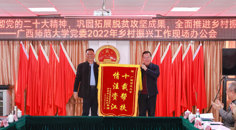 资源县委、县政府向广西师范大学赠送《十载帮扶 情注资江》锦旗