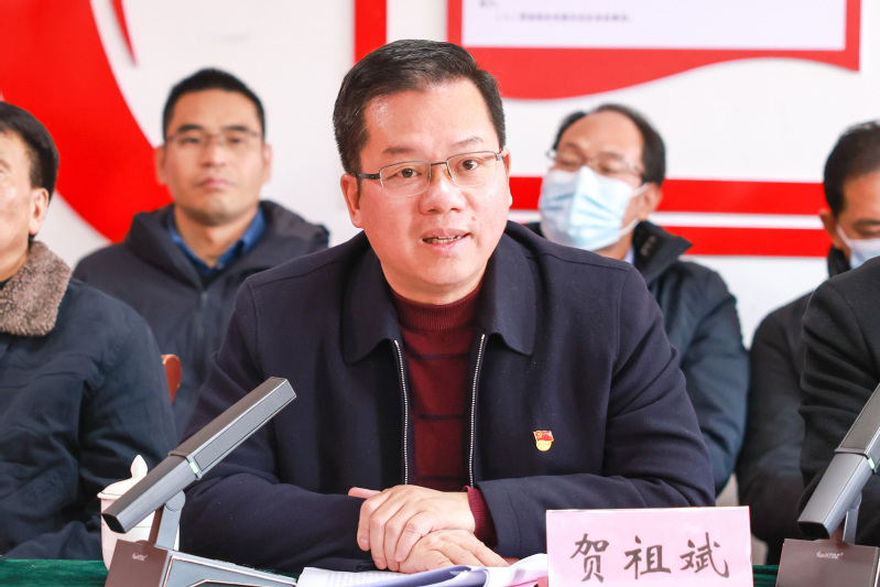 会上,贺祖斌感谢资源县委、县政府对我校建设与发展的大力支持,特别是90周年校庆之际,资源县向我校捐赠《十载帮扶 情注资江》帮扶纪念碑及90棵红豆杉,见证了学校与资源县之间深厚的情感与渊源。他表示,定点帮扶工作自2012年开始至今已有十年时间,也成就了广西师范大学与资源县之间的一段佳话。在学校与县委、县政府双方的共同努力下,脱贫攻坚工作取得丰硕成果。贺祖斌强调,广西师范大学将深入学习贯彻党的二十大精神,坚持以党建引领乡村振兴,充分发挥学校科教资源优势,着力打造教育、科技、旅游和消费振兴的“四大品牌”升级版,巩固拓展脱贫攻坚成果,全面推进乡村振兴,全力推动帮扶工作再上新台阶,共同推动定点帮扶工作在十周年之际再上新台阶。向资源县人民交上一份满意的答卷!