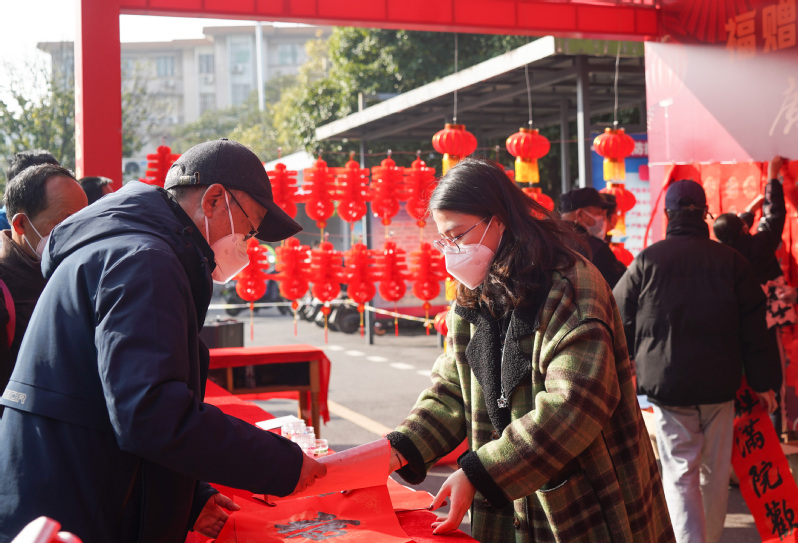我校师生员工、教职工家属领取春联、福字和灯笼