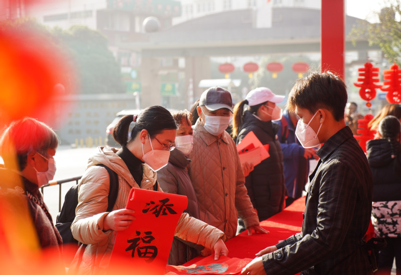 本次活动特别邀请了我校老中青少不同年龄层次的书法家和书法专业学生提前书写春联,参加人员可直接现场领取春联、福字或灯笼。据悉,我校“翰墨迎新春”现场送春联已经连续四年举办,深受广大师生喜爱,成为学校临近年关重要的文化活动。本次活动现场寄送的1000副对联,800个福字,灯笼600个,不仅展示我校书法家和师生的艺术底蕴和专业魅力,更是让大家在感受浓浓年味的同时深入贯彻落实党的二十大精神,弘扬传统文化,坚持文化自信,在祝福声中凝聚加快建设国内一流大学的精神力量。