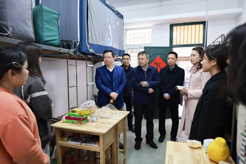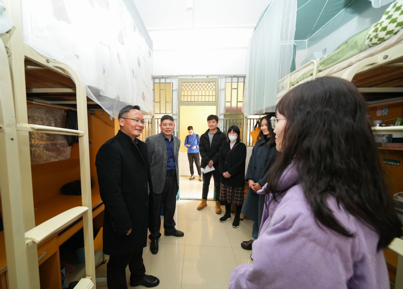 贺祖斌校长、苏桂发副校长、校党委常委林国庆一行实地走访学生宿舍