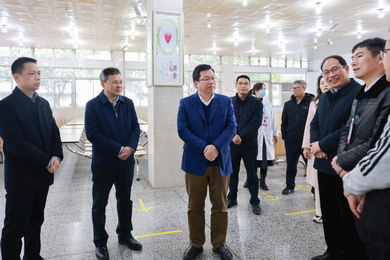 校长贺祖斌、副校长苏桂发、校党委常委林国庆一行实地走访西苑食堂