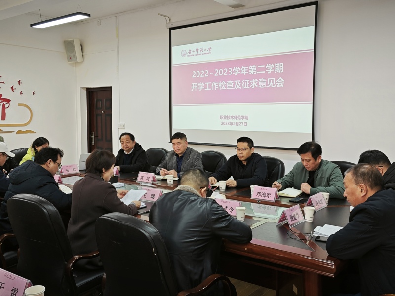 此刻师大,又乘春风浩荡时。2月27日,新学期如约而至,校长贺祖斌,校党委副书记旷永青、赵铁,副校长黄文韬、苏桂发、孙杰远,自治区驻校纪检监察组组长、校党委常委莫坷,副校长林春逸,校党委常委林国庆、黄海波、汤志华等校领导率相关职能部门负责人分赴各学院(部)进行新学期开学检查,听取学院(部)师生返校情况及新学期学科、院系发展汇报,并征求学院(部)发展意见及建议,确保新学期顺利进行。