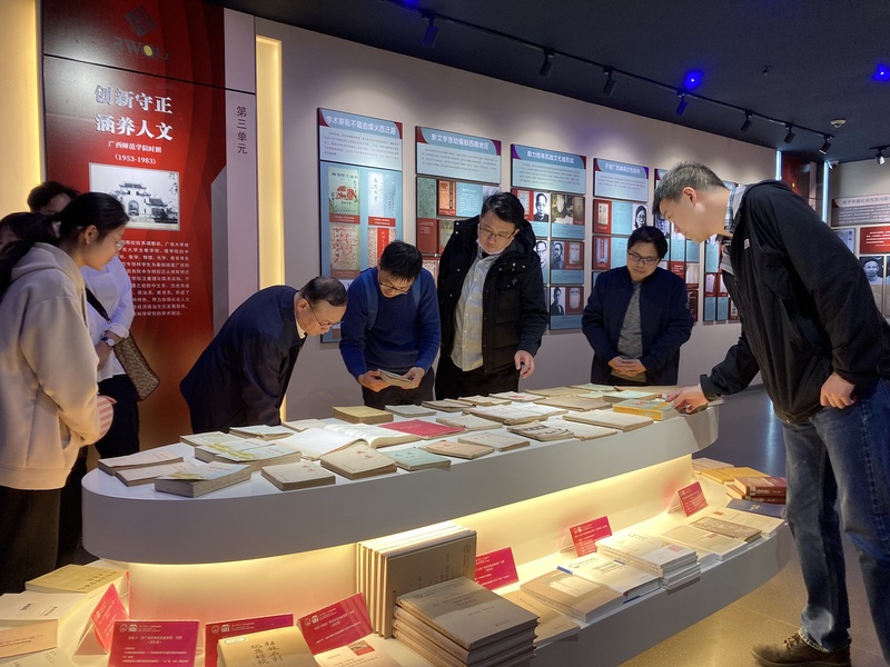 会前,与会人员参观了我校人文强桂展馆,对学校各办学时期人文社会科学发展的特点和成就进行了深入的了解。