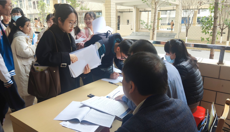 教师岗位招聘吸引了大量毕业生的关注,招聘现场气氛热烈,从现场人数可以看得出教师岗位的受欢迎程度。招聘现场中各教育局有序进行组织报名,并耐心向毕业生介绍招聘方式、岗位福利待遇等学生感兴趣的问题。6家教育局共吸引了校内外近一千人到场投递求职简历。