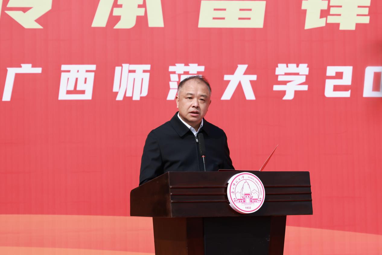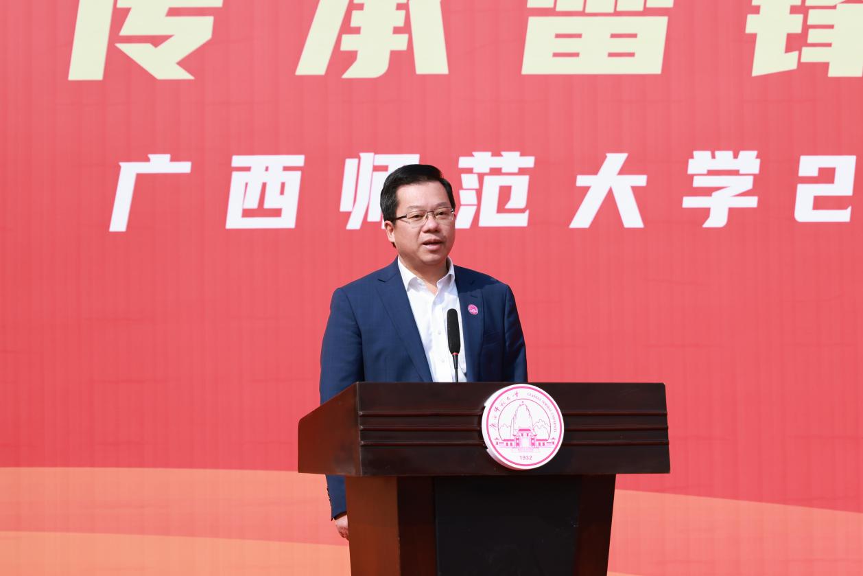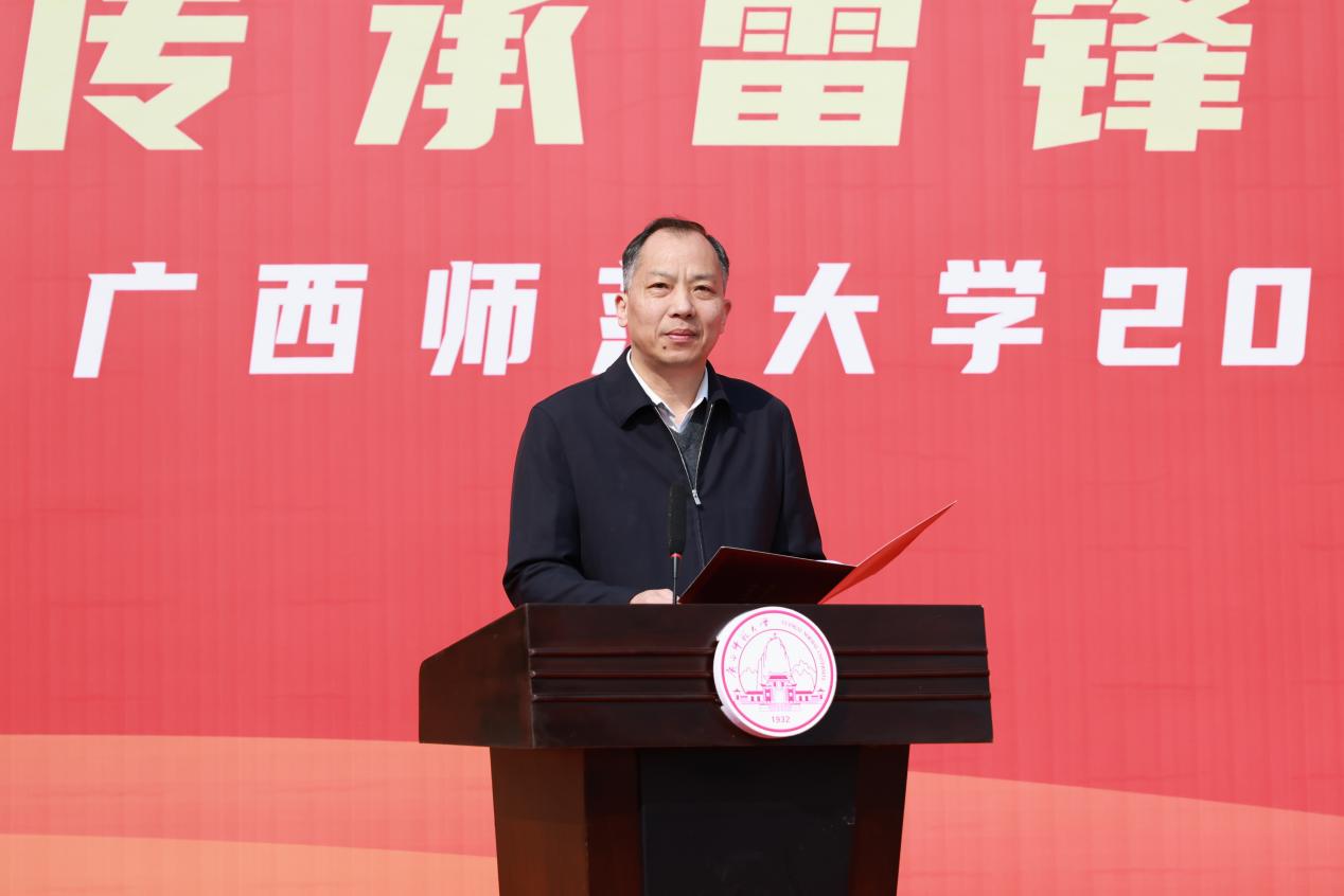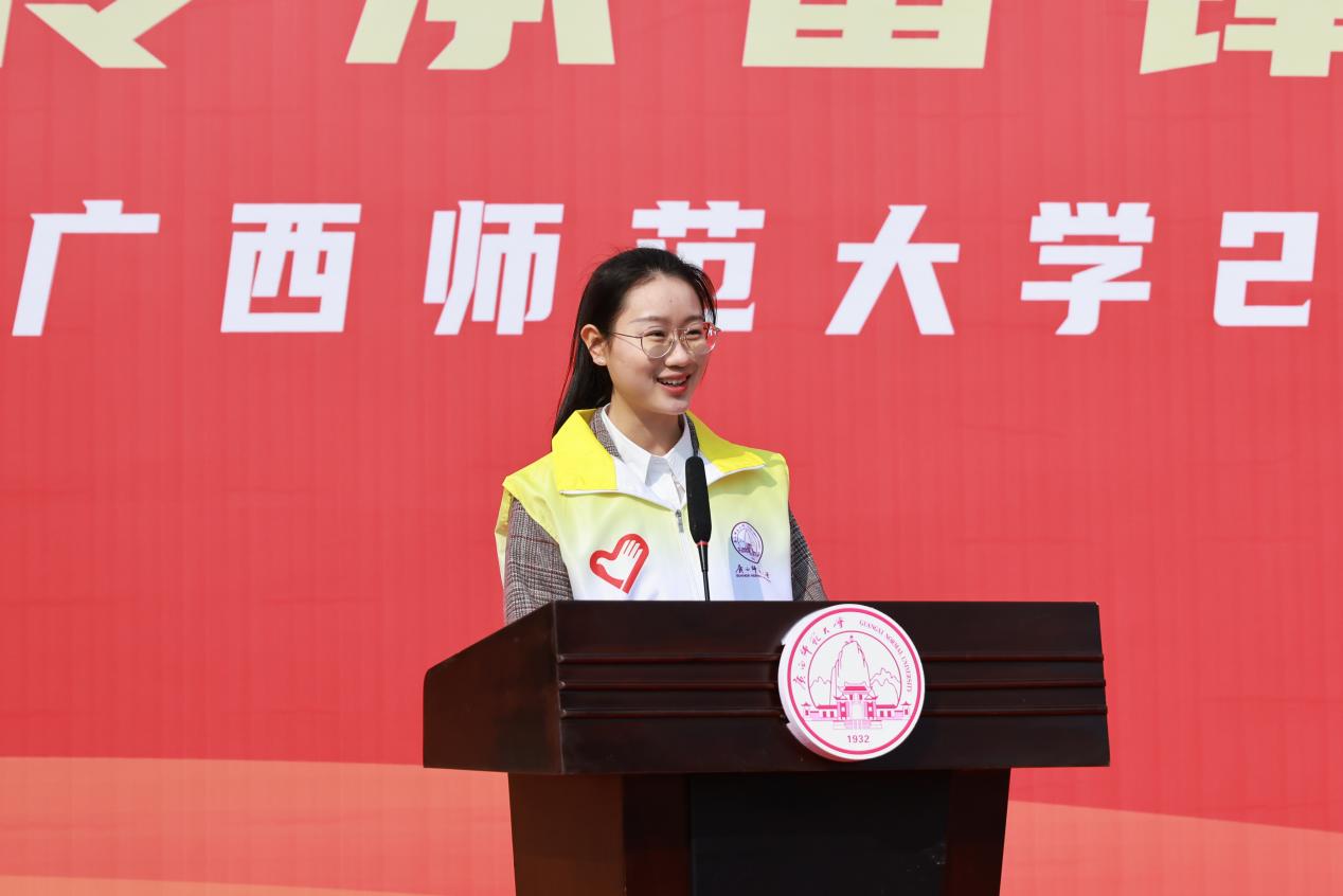 启动仪式上,旷永青为学校学雷锋志愿服务队授旗;青年学生志愿者代表、2022年广西最佳志愿服务项目“河流卫士”团队负责学生彭博就开展学雷锋志愿服务活动进行倡议,号召全校师生挺膺担当,争做雷锋传人,用实际行动诠释雷锋精神的时代内涵。