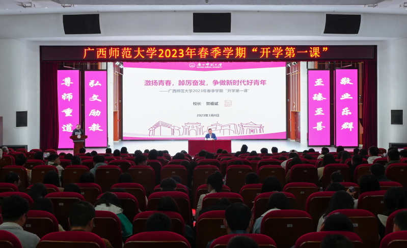 据了解,为深入贯彻习近平新时代中国特色社会主义思想和党的二十大精神,进一步加强学生思想政治教育,引导学生坚定成才梦想,坚定报国信念,根据教育部及自治区教育厅相关要求,结合学校学生工作实际,广西师范大学制定了学校2023 年春季学期“十个一”系列主题教育引导活动。本次“开学第一课”作为系列主题教育引导活动的重要一环,由校长贺祖斌率先开讲,未来将陆续开展系列主题教育引导活动。