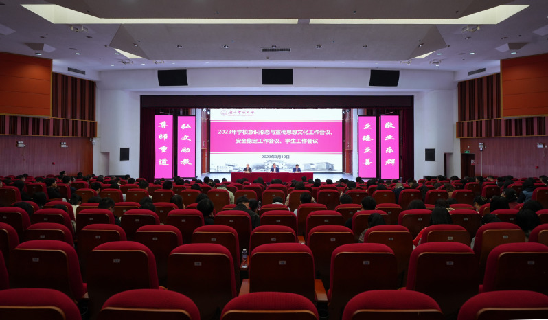 校党委常委、副校长黄文韬总结2022年学校安全稳定工作和学生工作,部署2023年学校安全稳定工作和学生工作;校党委常委、宣传部部长汤志华传达学习2023年春季开学全区教育系统意识形态和校园安全稳定工作调度会精神,总结2022年学校意识形态与宣传思想文化工作,部署2023年学校意识形态与宣传思想文化工作。