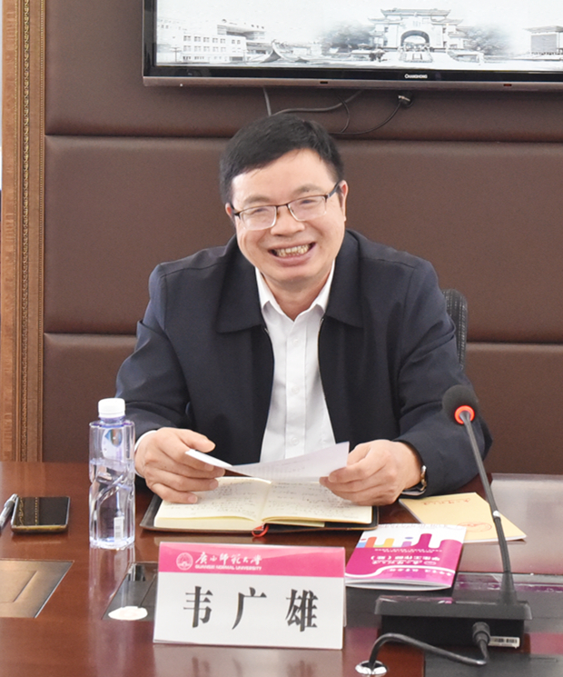 玉林师范学院党委副书记韦广雄介绍本次来访目的和内容,同时表达对两校友好共进的美好愿望,并提出希望以此调研为契机,增进两校在团学工作的互动交流。