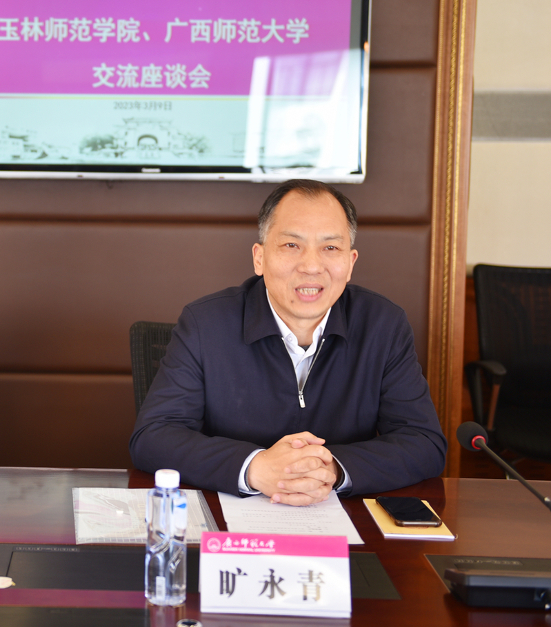 会上,我校党委副书记旷永青对玉林师范学院党委副书记韦广雄一行来校表示热烈欢迎,并就我校整体发展概况作简要介绍。