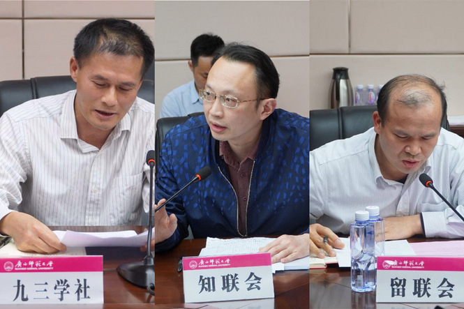 九三学社主委陈振锋、知联会会长徐毅、留联会综合分会副会长潘美德发言