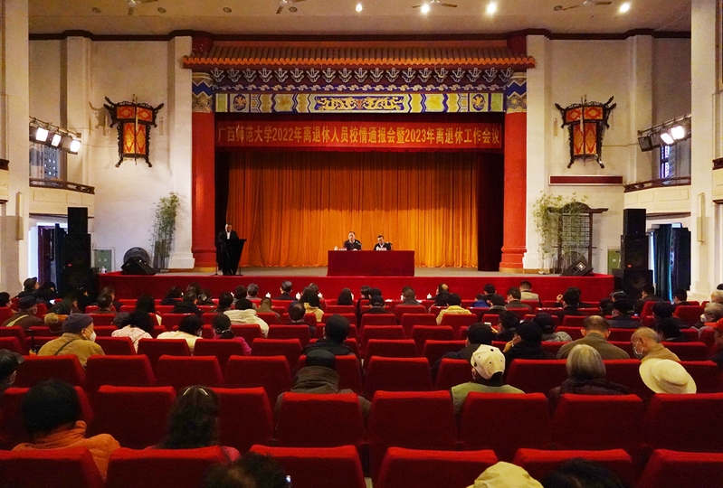 3月27日上午,我校在王城校区大礼堂召开2022年离退休人员校情通报会暨2023年离退休工作会议。校党委副书记旷永青出席会议并作情况通报,校党委常委、统战部部长、机关党委书记黄海波主持会议。