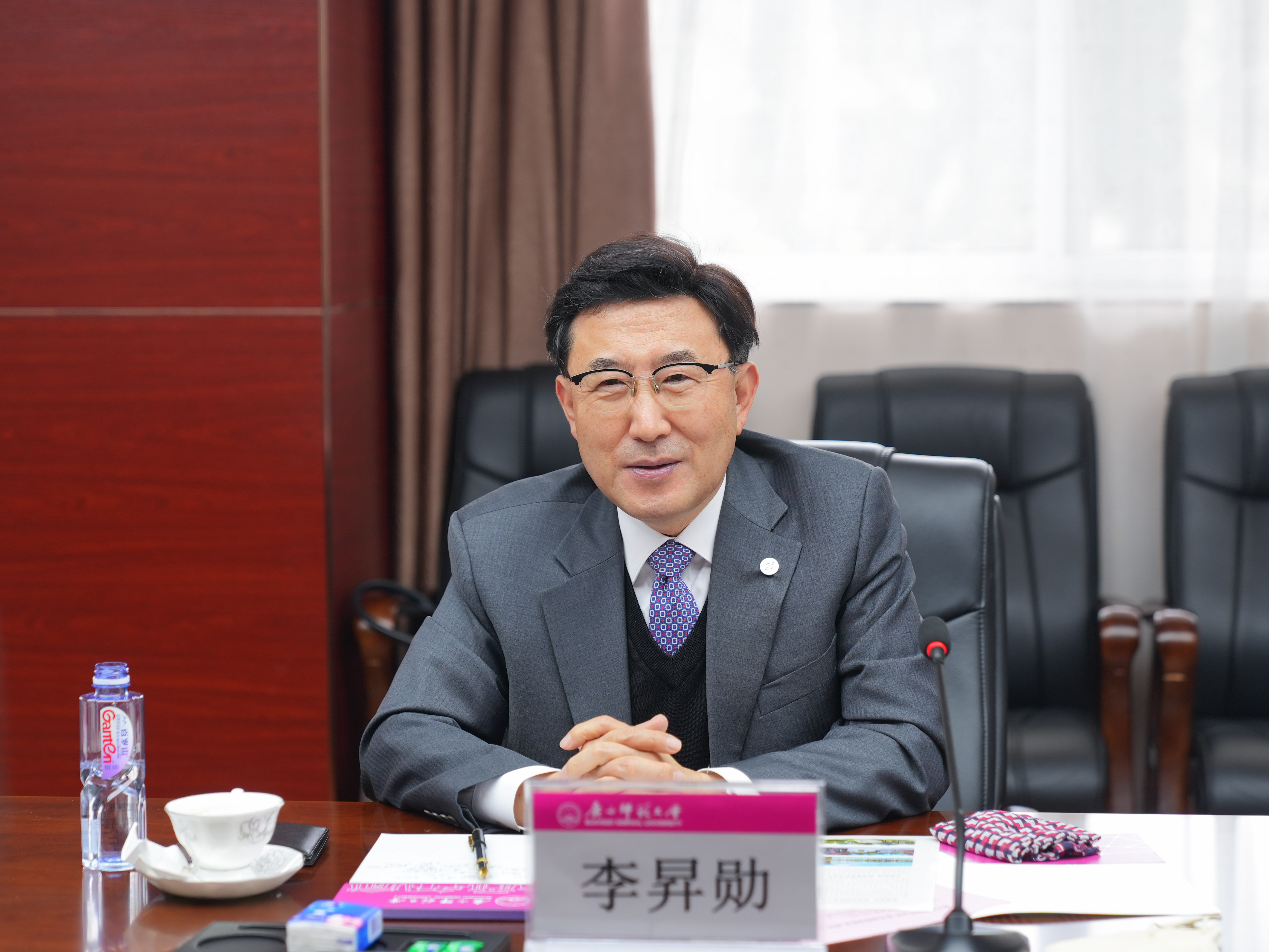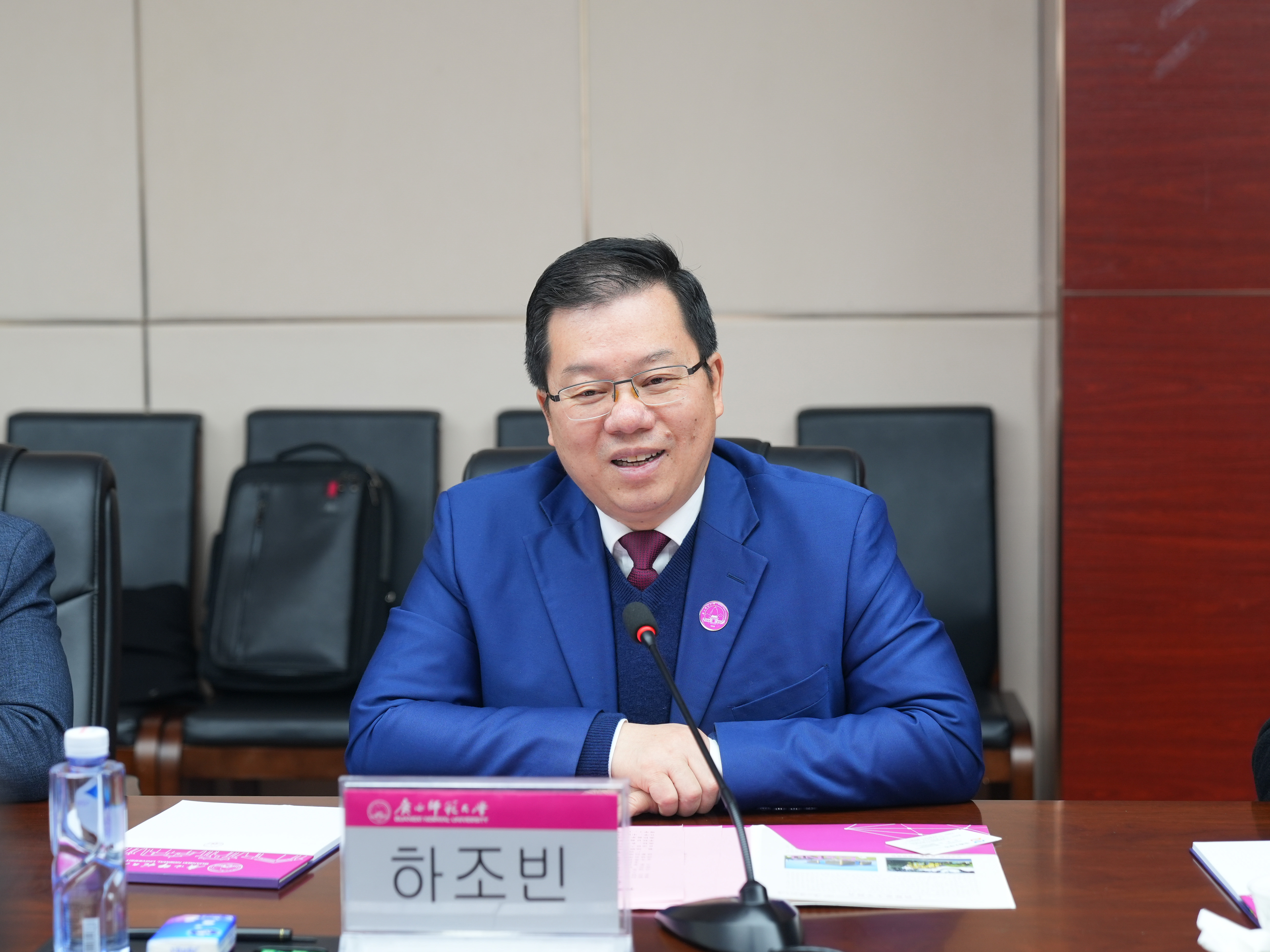 在座谈会上,贺祖斌对李昇勋总长一行的到访表示热烈欢迎,并回顾了我校与世翰大学20余年的合作历史。他从办学规模、师资力量、办学条件、国际交流与合作等方面介绍了学校20余年的发展变化,希望进一步加强两校的交流,助推两校在新阶段取得更多合作成果。