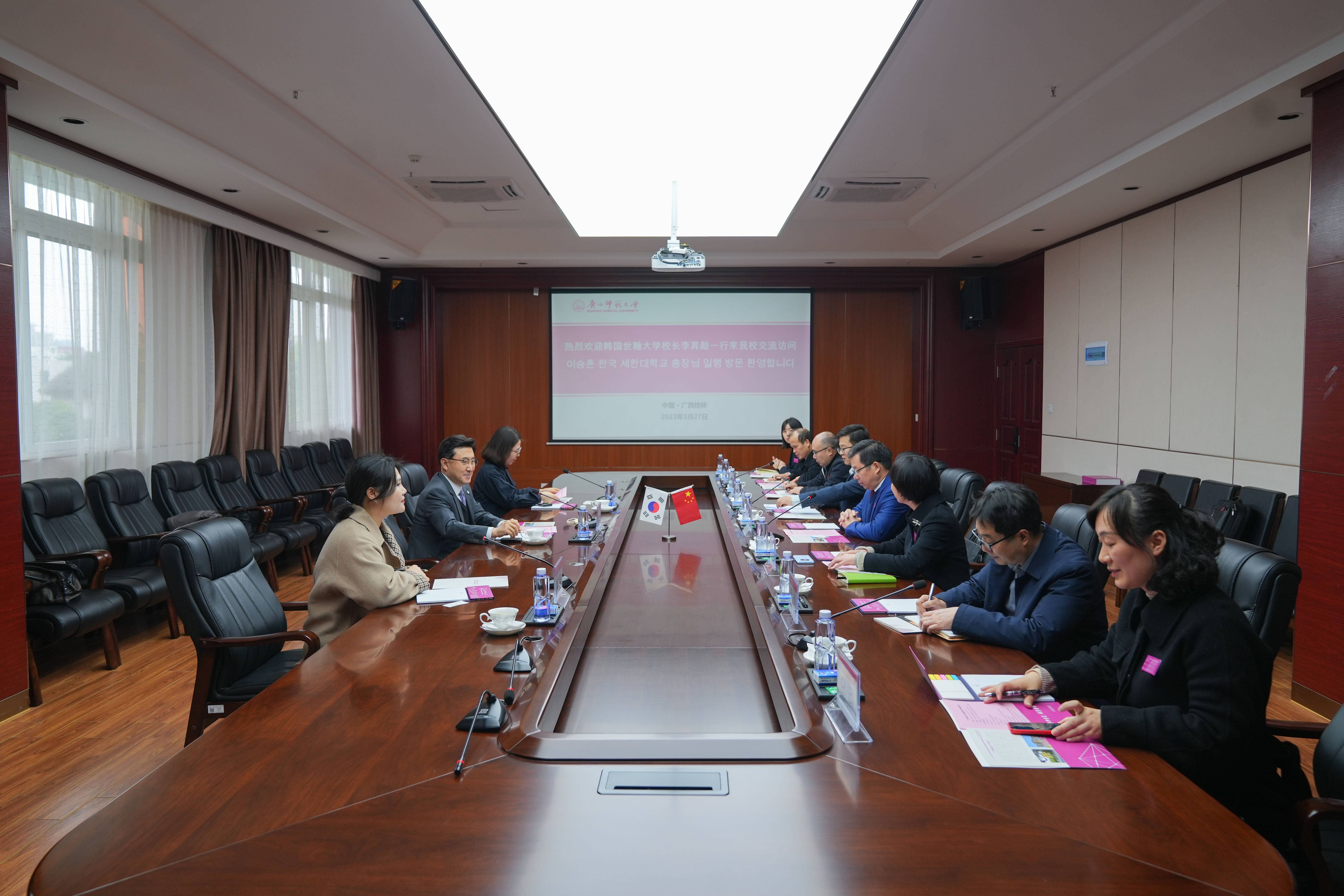 3月27日,韩国世翰大学总长李昇勋一行来我校交流访问。我校党委副书记、校长贺祖斌在国际教育交流中心接待了李昇勋总长一行,并出席座谈会。国际合作与交流处、体育与健康学院、音乐学院主要负责人及相关工作人员参加座谈会。