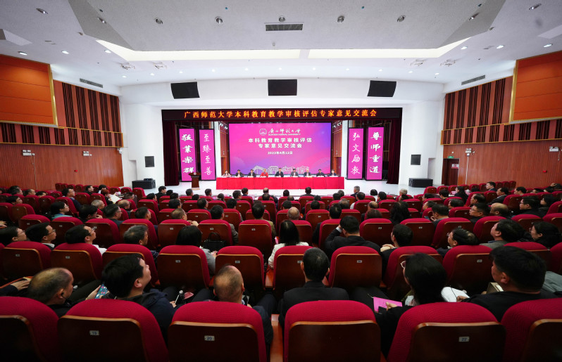 4月12日下午,广西师范大学本科教育教学审核评估专家意见交流会在雁山校区音乐楼三楼综合厅举行。教育部审核评估专家组组长瞿振元等16位专家组成员,广西师范大学校长贺祖斌等校领导班子成员出席会议。会议由教育部审核评估专家组副组长、南宁师范大学校长李传起主持。